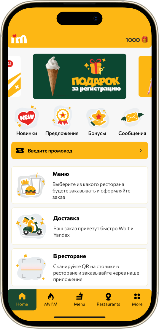 Потрать эти бонусы на продукцию I‘M в удобном для тебя ресторане
