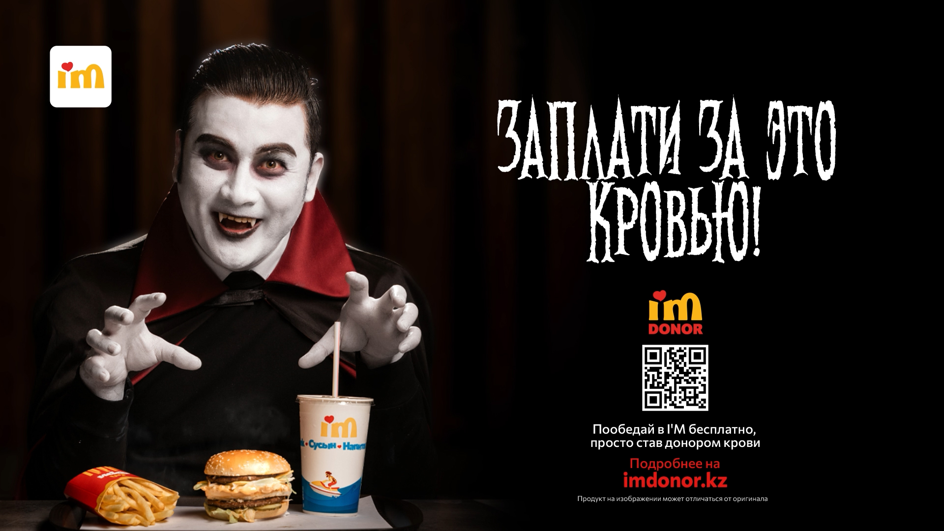 Не пугайся, это всего лишь благотворительный проект I'M Restaraunts и Центров крови Казахстана.